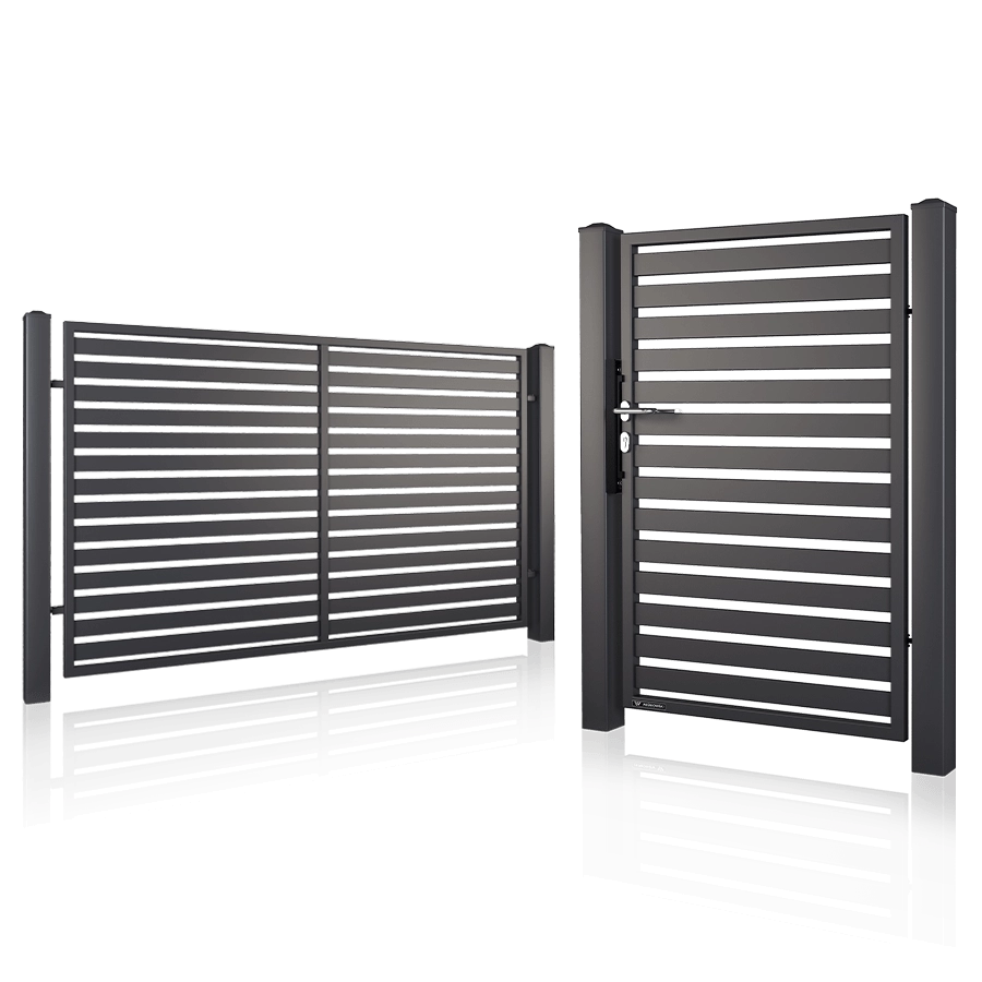 Gennemprøvet stål og eksklusivt aluminium i MODERN-kollektionen er indbegrebet af modernitet. De 22 attraktive og iøjnefaldende hegndesign er lavet af boksprofiler samt perforerede og solide plader – afhængigt af modellen.